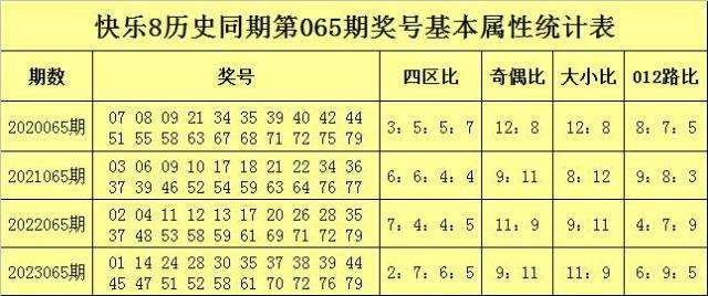 万妙仙快乐8历史同期第065期奖号基本属性分析