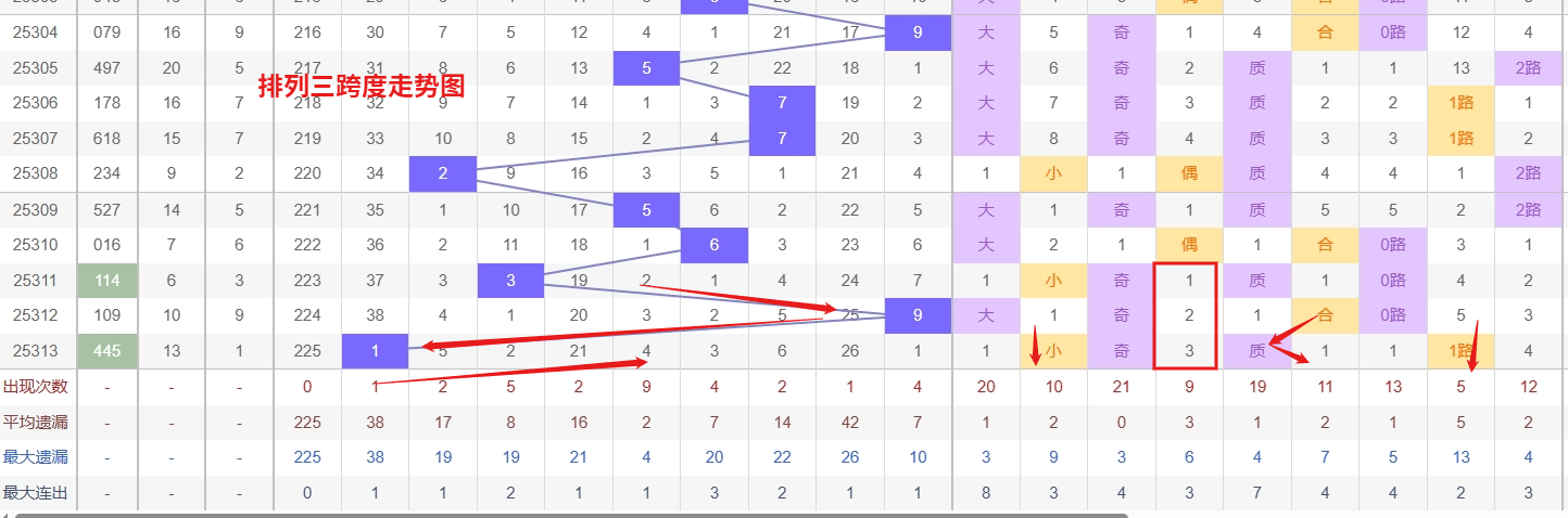 排列三第2025313期开奖回顾:开奖号码:445 形态:组三