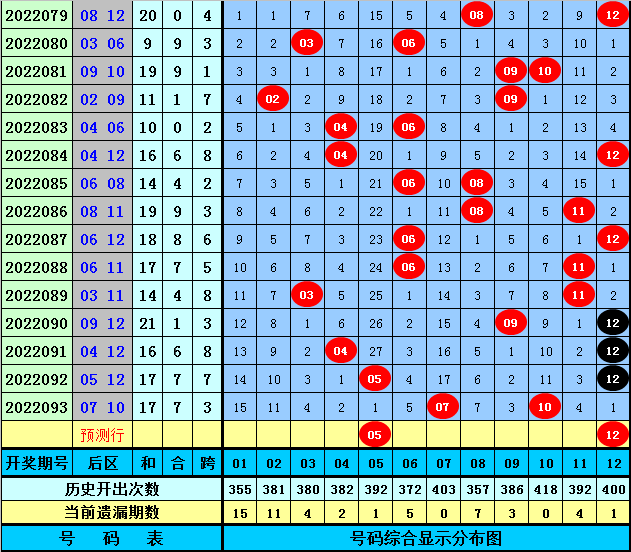 综合分析,第2022094期大乐透前区奖号012路比推荐1:1:3。