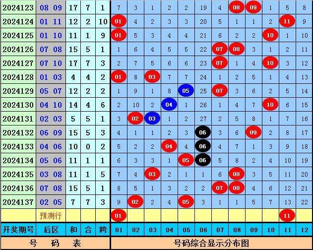 后区分析:上期后区开出号码02和05,历史上后区02和05组合开出了37次,前5次02和05组合出现之后,其下期后区分别开出:03 07、04 05、02 07、01 04、04 12,本期后区注意号码01、02、06、10、11,后区杀五码04、05、07、09、12。