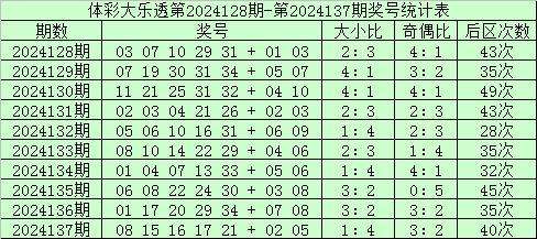 体彩大乐透第24137期开出奖号:08 15 16 17 21+02 05,其中前区奖号大小比为1:4,奇偶比为3:2,后区奖号02+05,在历史上开出了40次。