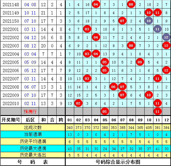 大乐透第2022011后区号码分析