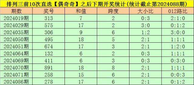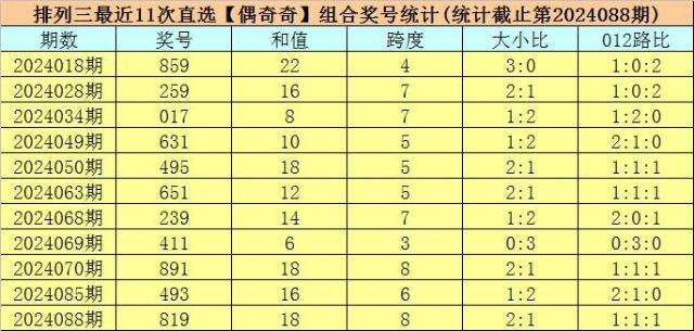 开奖回顾:排列三第2024088期开出奖号:819,类型为组六,和值为18,奇偶比为2:1,大小比为2:1,跨度为8。