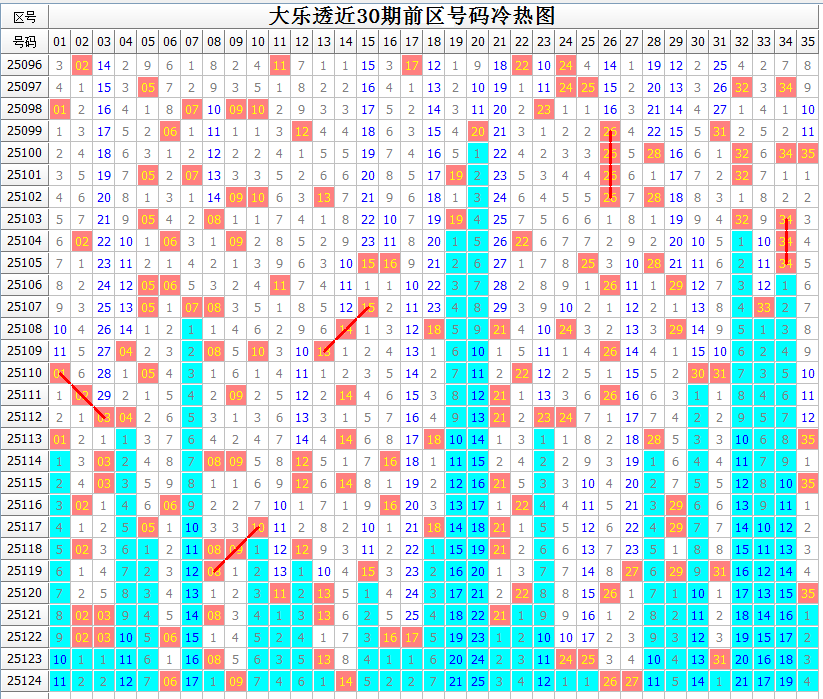 对前区大势的把握,少不了号码区间分布的情况。