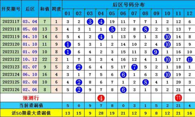后区奖号分析: