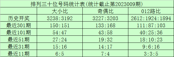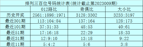 上期回顾:排列三第2023009期奖号为:221。奖号形态组三,大小比0:3,奇偶比1:2,012路0:1:2。