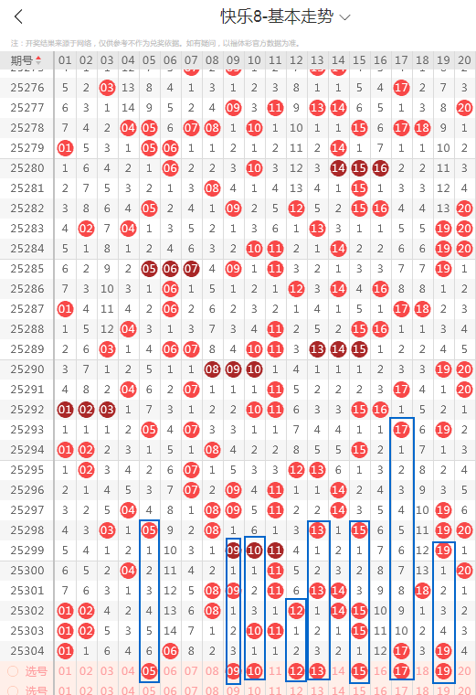 各位彩友粉丝朋友们大家好,我叫財星,是一名快8爱好者。本人擅长对快乐8的:遗漏走势分析大盘分析,抓胆及尾图定胆分析短期追号等等......个人比较喜欢玩选二,或选三复二这样比较稳定。最高战绩,连红过一个星期!每个月选二选三和复五,平均大概能命中13次左右。