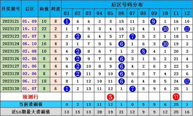 上期后区开出小大奇奇组合:01 07,在近10期开奖中,后区奖号大小比为8:12,奇偶比为5:15,本期后区大范围参考:02 05 09 11 12,特别推荐小大奇奇组合05 11。