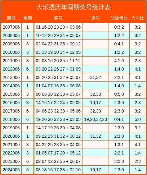 大乐透历年同期数据统计表