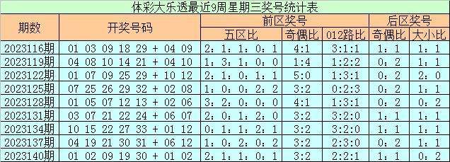 上期回顾:体彩大乐透上周星期三(第2023140期)奖号为01 02 09 19 30 + 01 02,前区奖号五区比为2:1:1:0:1,奇偶比为3:2,012路比为2:2:1,后区奖号奇偶比为1:1,大小比为0:2。