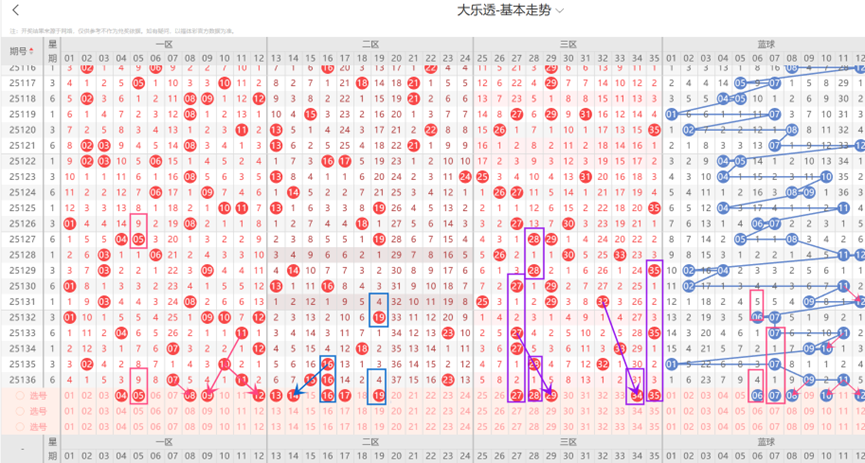 三、体彩大乐透第137期选号大底汇总