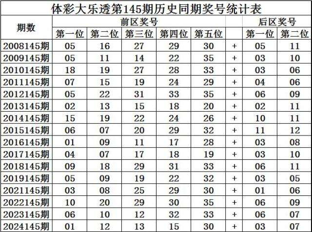 王守礼体彩大乐透第2024145期历史同期定位升重降号码分析: