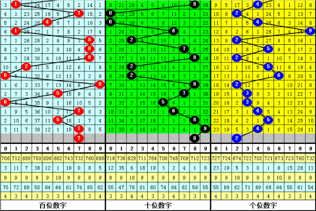 (2)在号码频次方面,开出个数最少的三个号码为:1、3、9,一般来说这三个号码不会同时出现,本期杀一码3;开出个数最多的四个号码分别为:7、8、2、5,本期看好这四个号码中包含1-2个开奖号码,胆码参考5。8。