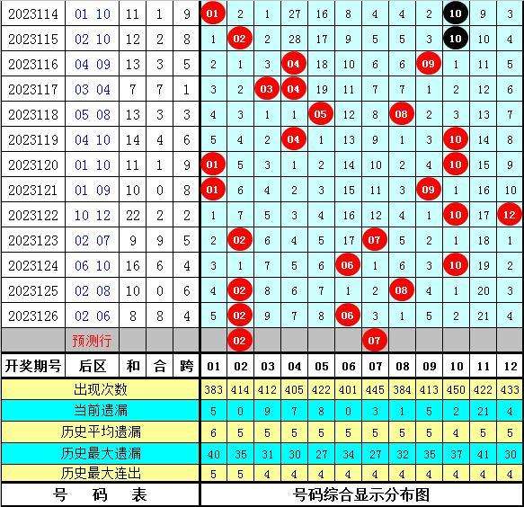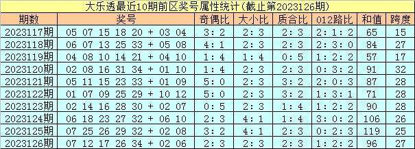 开奖回顾:体彩大乐透第23126期开出奖号为:07 12 17 26 34+02 06,前区奇偶比为2:3,大小比为2:3,012路比为1:2:2,质合比为2:3,后区奇偶比为0:2,大小比为0:2,012路比为1:0:1,质合比为1:1。
