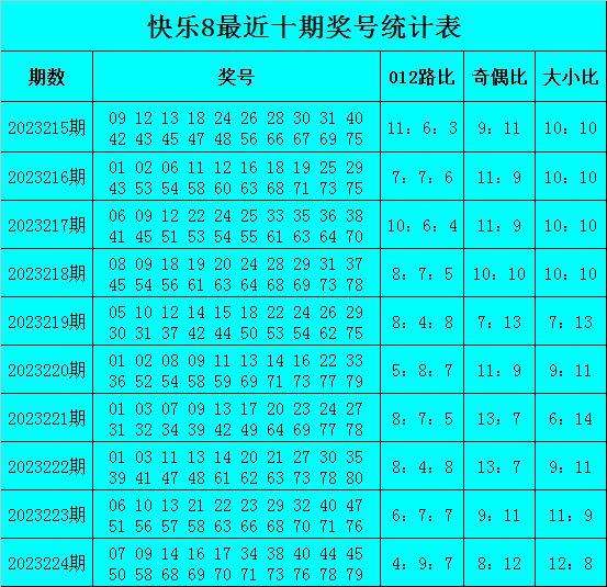 福彩快乐8第2023224期开奖回顾:07 09 14 16 17 34 38 40 44 45 50 58 68 69 70 71 73 76 78 79,其中奖号012路比为4:9:7,1路号码表现活跃。