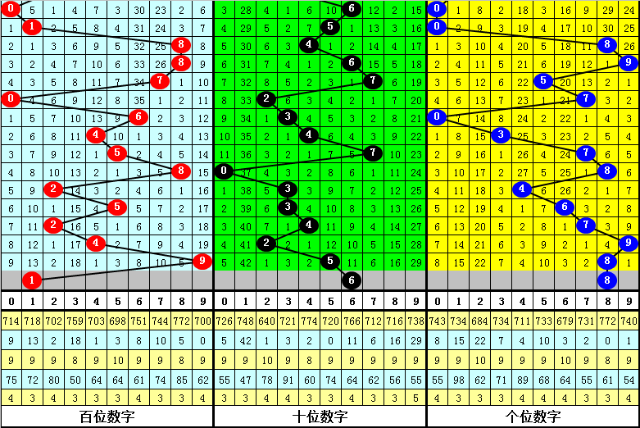 3、组选号码012路比为66:42:79,其中0路号码轮空10期,1路号码轮空20期,2路号码轮空13期,本期012路比参考1:1:1组合。