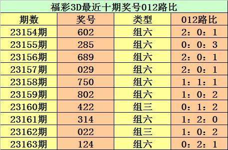 开奖回顾:第2023163期3D奖号为124。形态:组六,奇偶比1:2,大小比0:3,012路比为0:2:1。