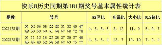 万妙仙快乐8历史同期第181期奖号基本属性分析