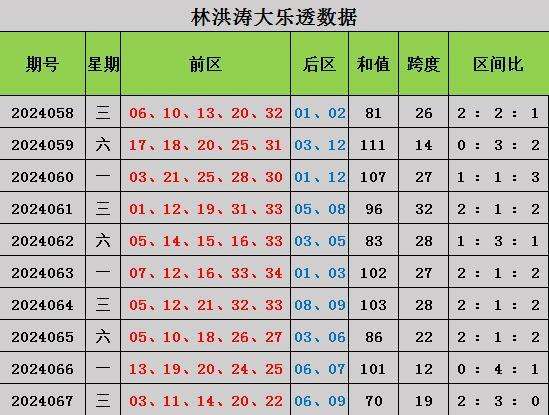 林洪涛大乐透本期推荐: