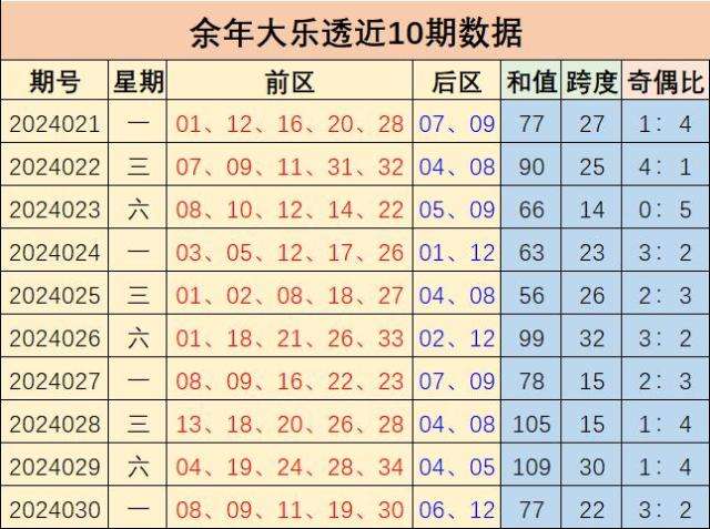 031期余年大乐透预测奖号:跨度分析