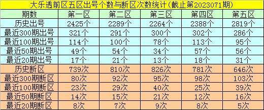 大乐透第2023072期前区五区奖号分析: