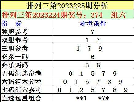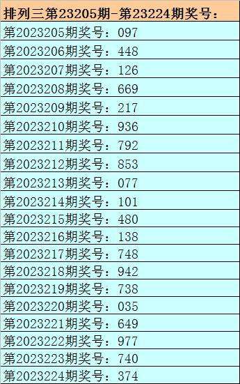 1。排列三最近十期分别开出号码:480-138-748-942-738-035-649-977-740-374,其中有8期奖号开出了上期的重复号码,本期预计第2023224期奖号:374中有重号,参考号码:7。