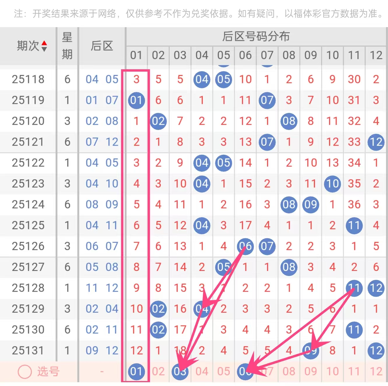 后区杀号(3个):01、03、06