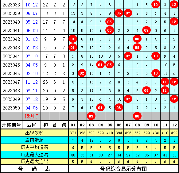 在历史同期开奖中,后区号码和值奇偶为9:7,其中奇号和值走势活跃,本期防奇号和值再次出现,关注和值11。