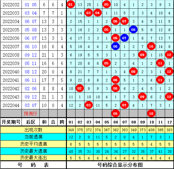 彤彤第2022045期体彩大乐透后区遗漏分析:(定义:后区遗漏0-3期号码为热码,遗漏4-9期号码为温码,遗漏9期的号码以上为冷码)