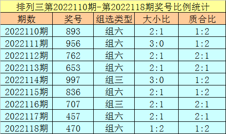 上期回顾:排列三第2022118期奖号为470。奖号形态为组六,012路比为1:2:0,和值为11,奇偶比为1:2,大小比为1:2,跨度为7。