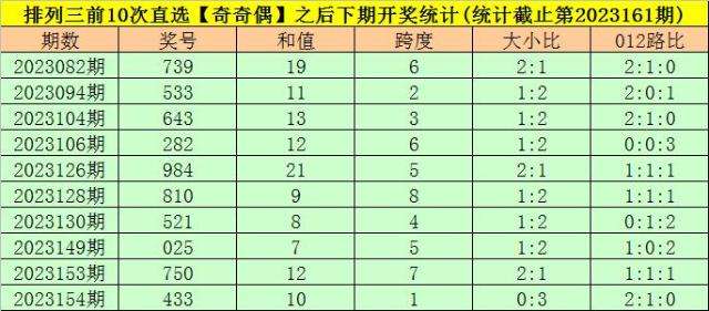 3。在前10次【奇奇偶】类型奖号开出之后,其下期奖号分别开出:799、533、633、222、944、800、511、055、700、433;