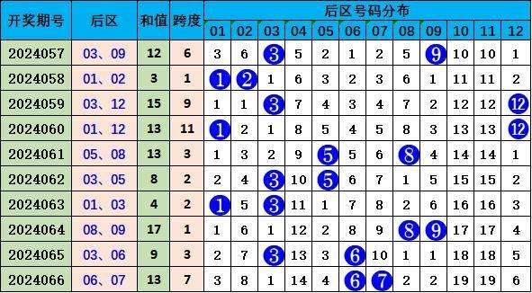 根据近期奇偶走势判断,本期后区推荐:05、09。