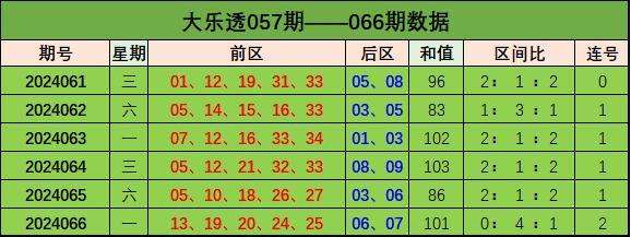 大乐透24066期开奖,本期奖号:前区13、19、20、24、25后区06、07;当期前区号码三区比为0:4:1,奇偶比为3:2。形态方面,前区开出连号19、20、24、25;未开出重号。