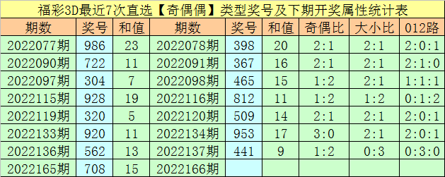 奇偶比:上期奇偶比为1:2,形态为偶偶奇,奇数走冷,本期注意奇数回补,参考奇偶比3:0,形态关注奇奇奇。