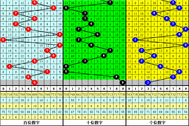 个位上期奖号为7,下降1个点位,本期注意再次下降,参考3。