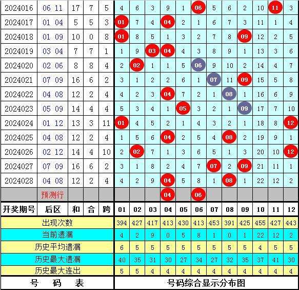 后区分析:后区上期开出号码04+08,和值为12,跨度为4。最近10区后一区(01-06)开出10个号码,断区2次,后二区(07-12)开出10个号码,断区2次,本期后一区注意号码:04、06;后二区注意号码:08、09、10、12。