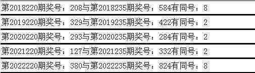与前期历史同期奖号对比分析,在最近五年开奖中,第220期同期奖号与第235期同期奖号都出现了相同号码: