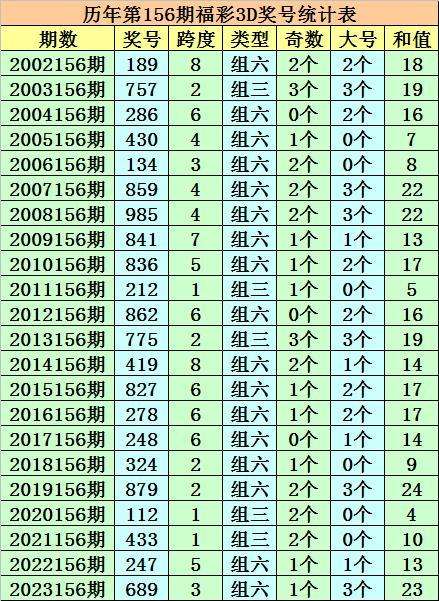 开奖回顾:福彩3D第2023156期奖号:689。