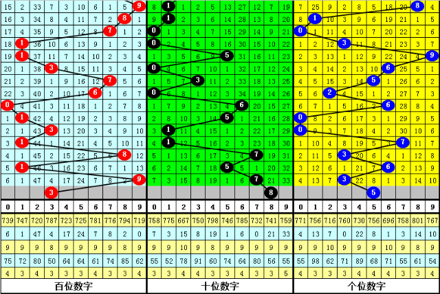 直选定位:上期百位开出0路号码:9,本期百位注意0路号码:3;
