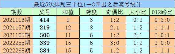 1、最近两期排列三十位号码开出号码分别为1和3,历史上十位号码连续两期同时出现号码1和3的奖号共开出73期。最近五次下期开出号码为:414、219、506、339、384;