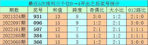1、排列三前两期个位分别开出号码0和4,历史上个位号码连续两期分别出现0和4时,共有72次。在最近5次出现时,其下期分别出现号码:931、096、507、384、366;