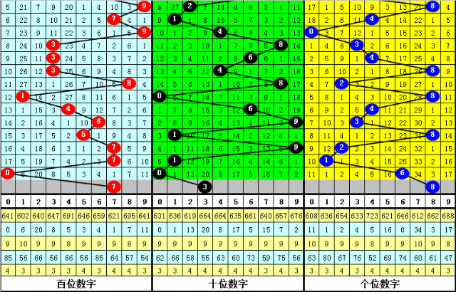 其中,号码0-9开出次数分别为:号码0开出3次、1开出4次、2开出2次、3开出3次、4开出4次、5开出1次、6开出4次、7开出2次、8开出5次、9开出2次。