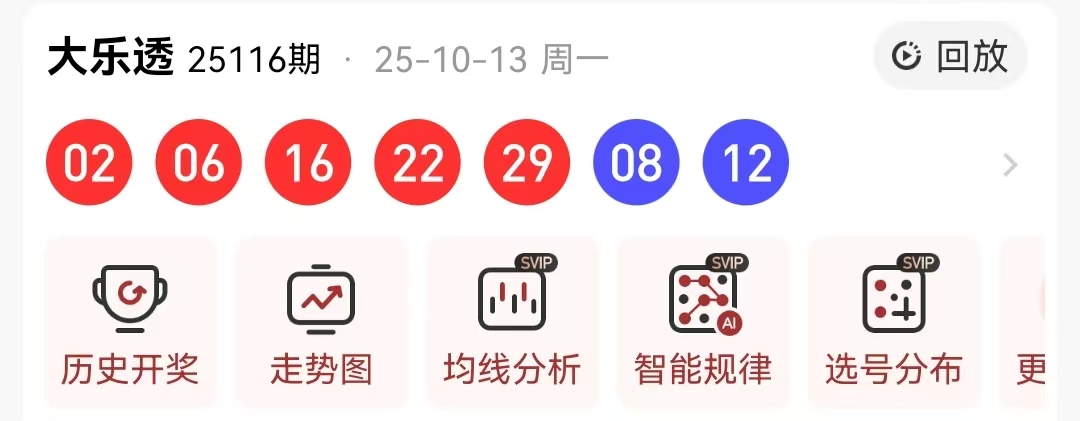 上期大乐透前区奖号开出02 06 16 22 29+08 12。前区的奇偶比为1:4,大小比为2:3,三区比为2:2:1,012路比为1:2:2,和值为75,跨度为27。后区则为两个大号的组合,这些数据为我们接下来的分析提供了基础。