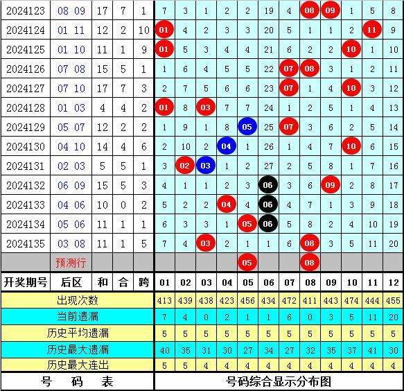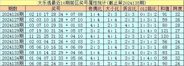 开奖回顾:体彩大乐透第24135期开出奖号为:06 08 22 24 30+03 08,前区大小比为3:2,012路比为3:1:1,质合比为0:5,奇偶比为0:5,后区大小比为1:1,012路比为1:0:1,质合比为1:1,奇偶比为1:1。