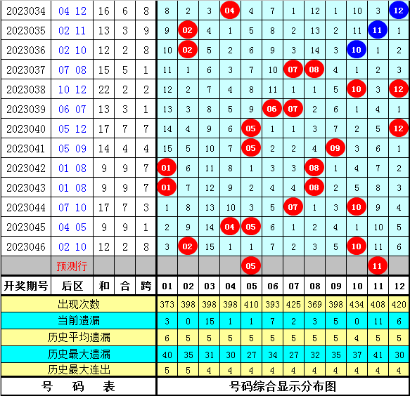 在历史同期奖号中,后区奖号跨度尾数大小比为13:3(定义:跨度1、2、3、10、11为小尾跨度,跨度4、5、6、7、8、9为大尾跨度),其中大尾跨度开出频次较多,本期预计继续开出大尾跨度,关注跨度6。