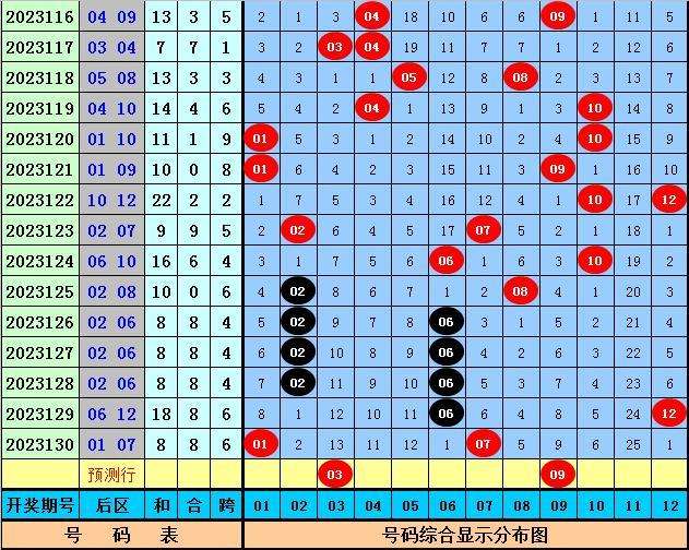 和值奇偶判断:最近7期后区和值分别开出:16、10、8、8、8、18、8,和值奇偶比为0:7,本期看好偶数和值继续出现,关注和值12。