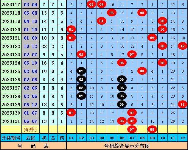 和值奇偶判断:最近7期后区和值分别开出:10、8、8、8、18、8、13,和值奇偶比为1:6,本期预计和值为偶数,关注和值16。