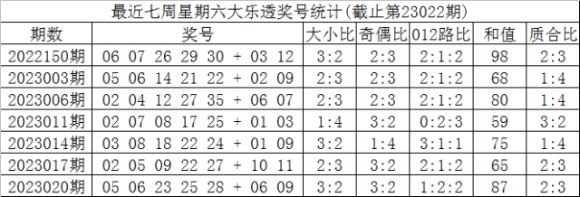 大乐透第2023020期(上周星期六)奖号为:05、06、23、25、28+06、09。
