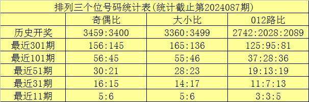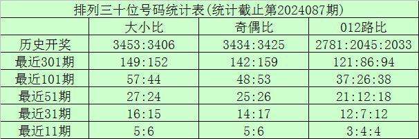 上期回顾:排列三第2024087期奖号为:161。奖号形态组三,大小比1:2,奇偶比2:1,012路1:2:0。