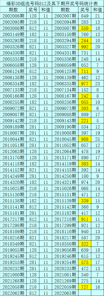 第2021053期奖号:869与第2021063期奖号811有同号:8;